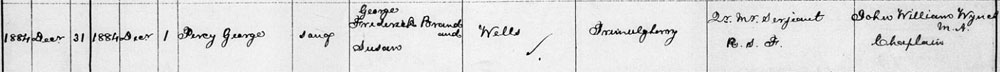 1884 Dec 1 Born Trimulgherry, Madras son of George Frederick Brand and Susan Wells . He was in the Army. His father appears in 1911 census married to another woman and died in UK in 1915