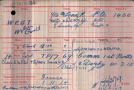 1920 Apr 14. E.Surr.R. Temp. Maj .W. G. West relinquishes his commission on completion of service and retains the rank of Major