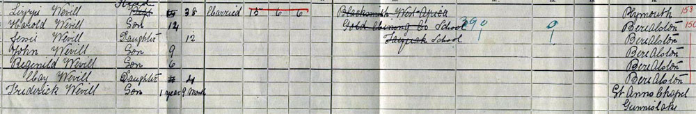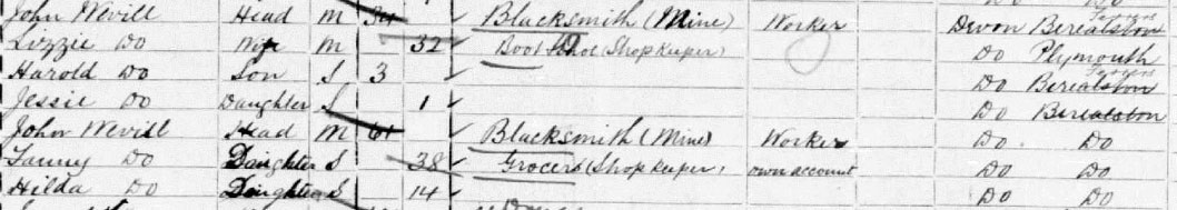 1911 census at Calstock, Devon