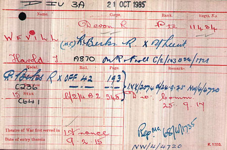 1922 Jan 16. Discharged on demobilisation of ADRIC.