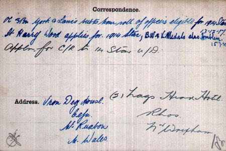 1939 Register Living at 15 Coe Coch , Wrexham R.D., Denbighshire,. He is a Storekeeper Heavy Chemical Works & retired officer Yorks & Lancs