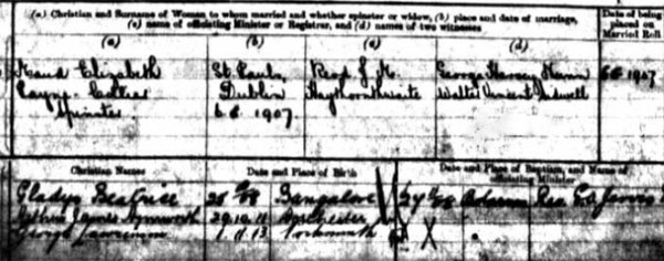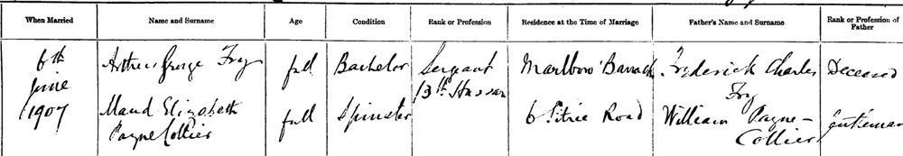 1907 Jun 6 Married in Dublin to Maud Elizabeth Payne-Collier