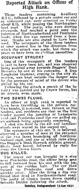 Ambush at Northumberland Av, Dublin on 10 Jun 1921
