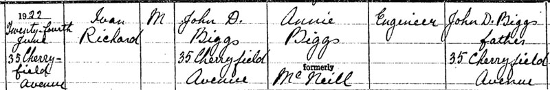 1920 Sep 27 Married in Dublin . A child John Deane Biggs born same year