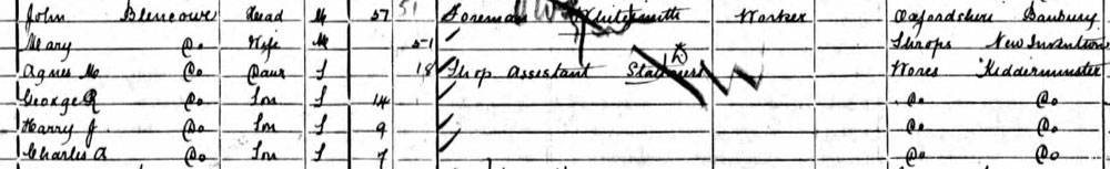 St George Boys National School living at Hurcott Road, Kidderminster Enrolled in 1900 and left to start work in 1907 as an office boy at age 14.