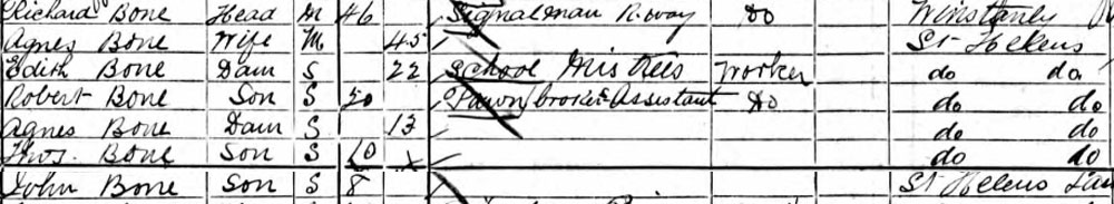1911 census at 5 Chain Lane St Helens (as on MIC)