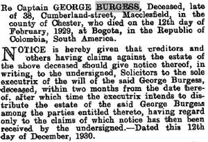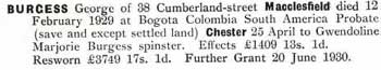 1929 Apr 25. Probate to Gwendoline Marjorie Burgess, who must be his daughter