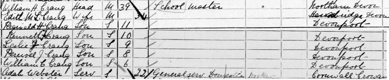 1901 census living at 7 Keppal Place, Stoke Damerel, Devon