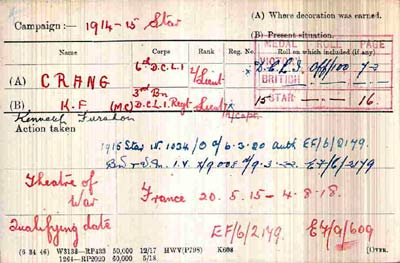 1940 Dec 6. Lt. Kenneth Fursdon Crang, M.C. (159644). Emergency commission as Lt.