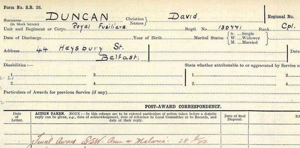 1911 census at Mayamo, Burma as a Rifleman First Battalion Royal Irish Rifles . Aged 22 and born Belfast