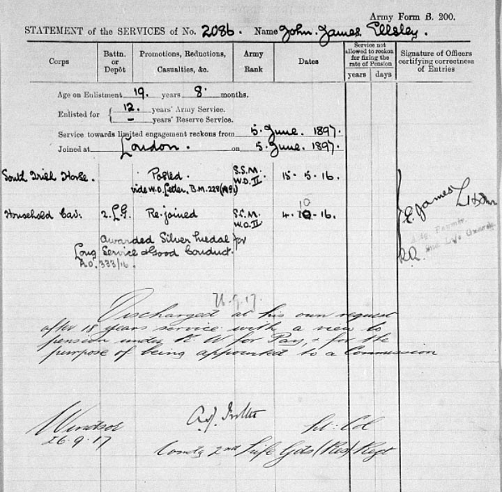 1901 census I cannot find him. He is in Boer War. Corporal J J Ellsley. 2086 2nd Regt of Life Guards. The Queen's South Africa (QSA) Medal Clasps: Cape Colony, Orange Free State
