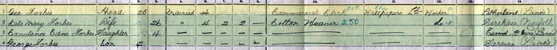 1911 census - At 25 Preston St, Darwen (as on RAF record)