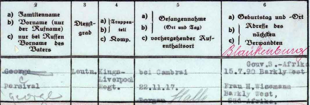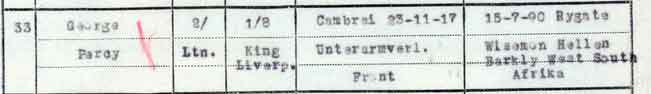 1917 Nov 20. P. A. R. George 2nd Lieutenant of the 8th Battalion Liverpool Regiment was reported missing