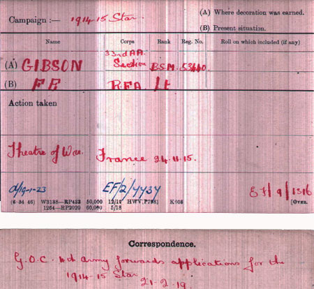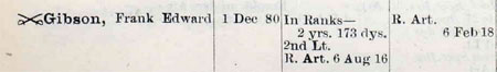 1916 Aug 6 Commissioned 2nd Lt in RHA as Frank Edward Gibson