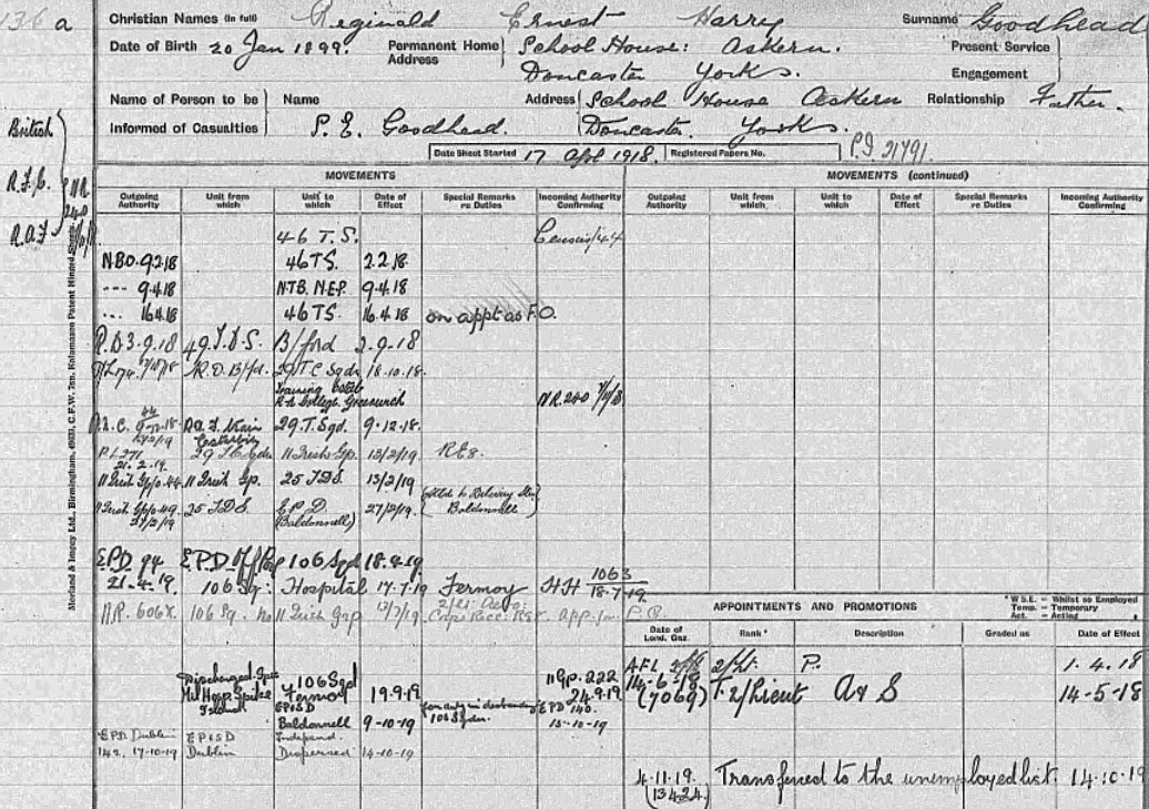 1917 Nov 30. The undermentioned Cadets to be temp. 2nd Lts. (on prob.). Reginald Ernest Harry Goodhead