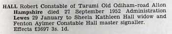 1952 Sep 27. Died, Alton, Hants. probate was not till 1957.