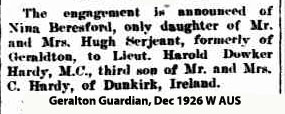 1926 Dec 30. Engaged to Nina Beresford Serjeant