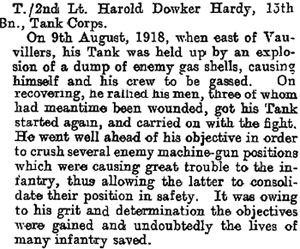 1920 Jun 4. Tank Corps. Temp. Lt. H. D. Hardy, M.C., relinquishes his commission on completion of service, and retains the rank of Lt