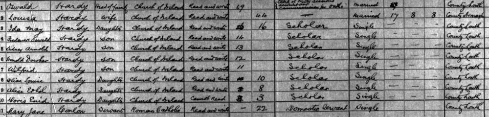 1911 census at 66 Barrack Street, Dundalk