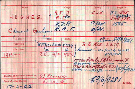 1919 Mar 3. Commissioned on discharge. 549958 Clement Graham Hughes