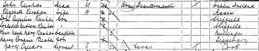 1901 census Not at home with his parents. At The Barracks Hospital, Canterbury, Kent. A patient at . Soldier in the Hussars.