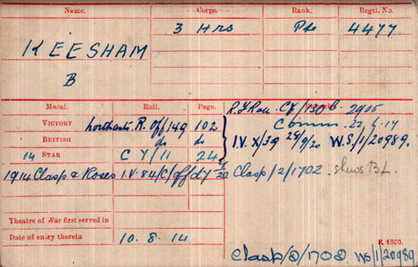 1917 Jun 22. Commissioned 2nd Lt. North's Reg .— Lce.Cpl. Bertram Keesham (sic) , from 3rd Hrs