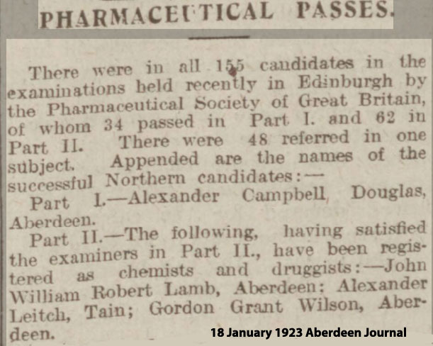 1923 Jan 18. Passes Pharmaceutical Exams