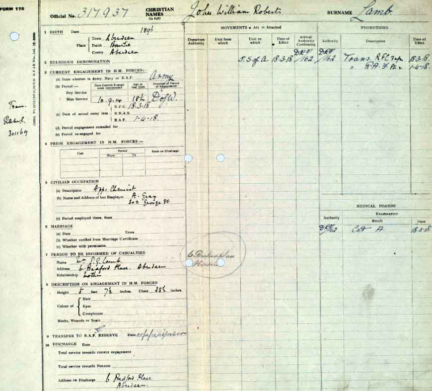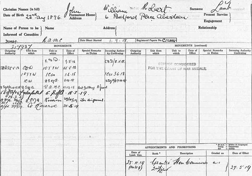 1918 Aug 29. MM Gazetted 301169 Pte. J. W. R. Lamb, R.A.M.C. (Aberdeen)
