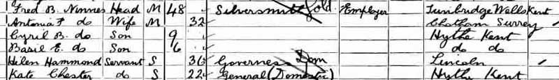 1901 census living with his parents at 1 Douglas Av, St Leonards Hythe, Kent