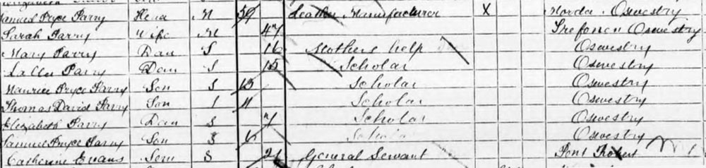 1891 census at Porkington Terrace, Willow Street, Oswestry,