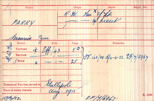 1916 Feb 3. All local and Welsh sportsmen will be sorry to learn that Maurice Parry, the Welsh international, who played many years for Liverpool F.C., has been in hospital. Parry is a lieutenant in the Royal Welsh Fusiliers, and took part in the Dardanelles operations. He has been in hospital in Luxor for twelve weeks which period he lost 38lbs weight. He has now returned to his regiment. (Liverpool Echo, 03-02-1916)