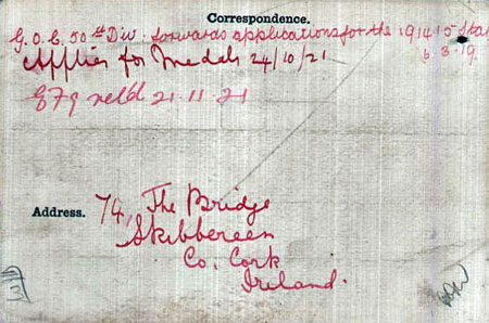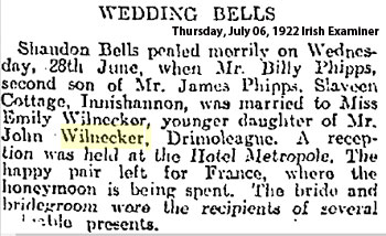 1922 Jun 28. Married in Shandon, Cork to Emily Jane Wilnecker