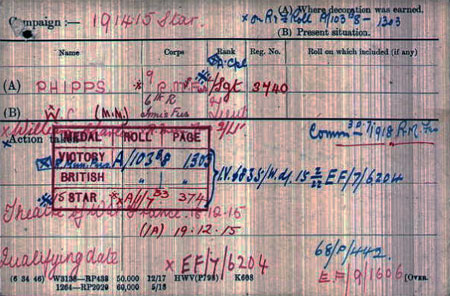 1919 Nov 15. Temp 2nd Lt. W. C. Phipps, M.M., relinquishes his commission on completion of service, and retains the rank of 2nd Lt