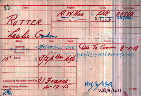 1919 Dec 6. Temp. 2nd Lt. L. G. Rutter relinquishes his commission on completion of service, and retains the rank of 2nd Lt..