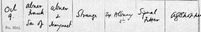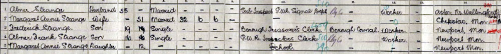1894 Sep 5. Born Abner Frank Strange in Monmouthshire (RIC)