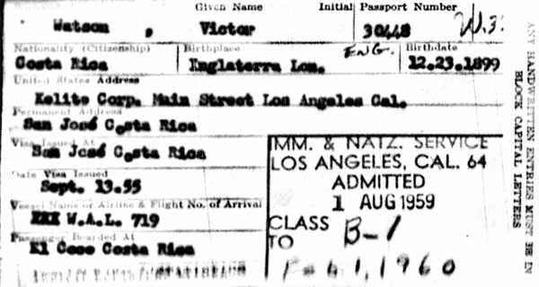 1959 Aug 1. Arrives in US, correct DOB. Living in Coasta Rica