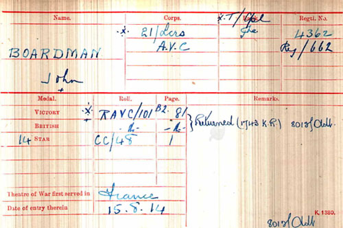 1881 Feb 5. Born 10 Benladi Street, Liverpool, Lancs. Son of John & Mary Anne Boardman