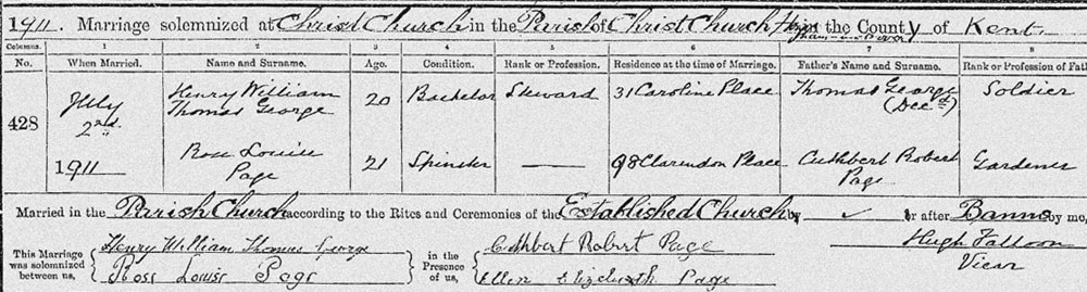 1890 Nov 27. Born Dover, Kent Son of Thomas & Margaret