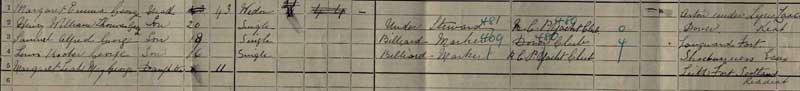 1901 census at Yarmouth Barracks, Norfolk. His father is a Company Sgt Major in RGA