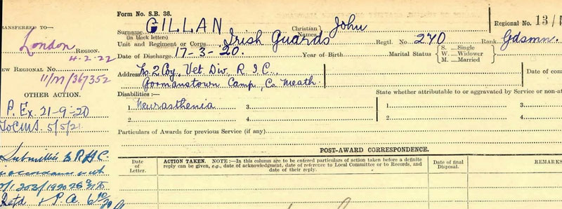 1911 census in London L/Cpl in Irish Guards born Cullybacky, Antrim