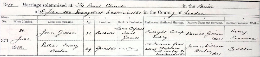 1912 Jun 30 Married in London to Esther M Bowler. They appear to have separated by 1939 Register