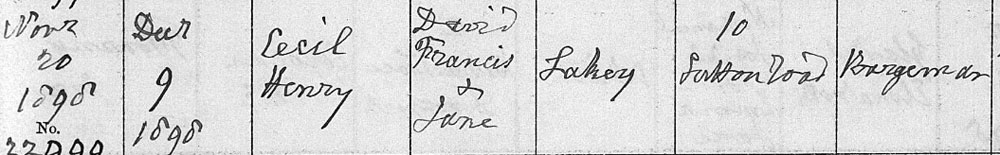 1898 Nov 20. Born Devon