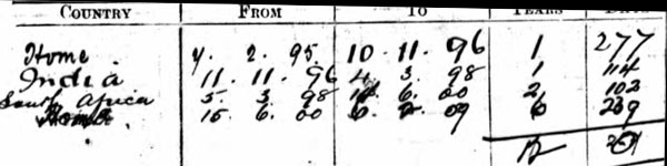 1907 Feb 6 Discharged from 5th Lancers at termination of engagement