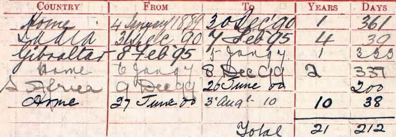 1889 Jan 7. Enlisted in RHA. Mother Maria, 18 Albany Terrace, Old London Rd, Hastings
