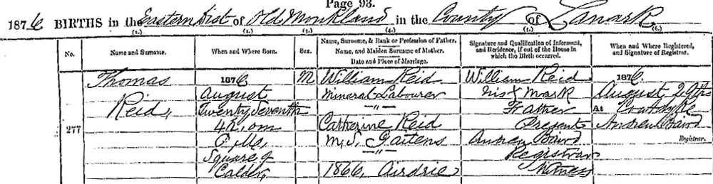 1876 Aug 27. born Old Monkland, Coatbridge, Lanark, Scotland