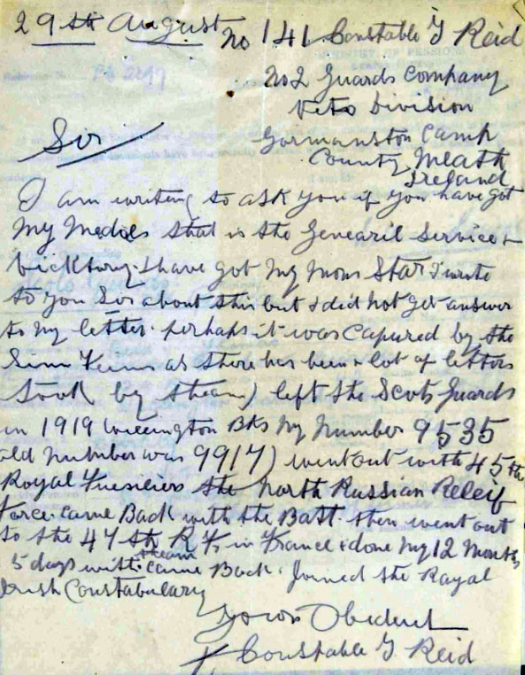 1914 Aug 26 Enlisted Scots GuardsScots Guards #9535 (old no was #9917)