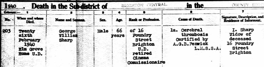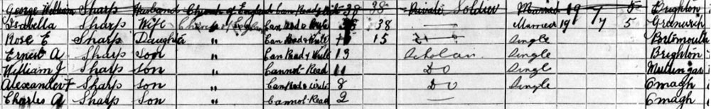 1873 Mar 1. Born Brighton Sussex. Baptism shows parents were Sarah & Edward Sharp