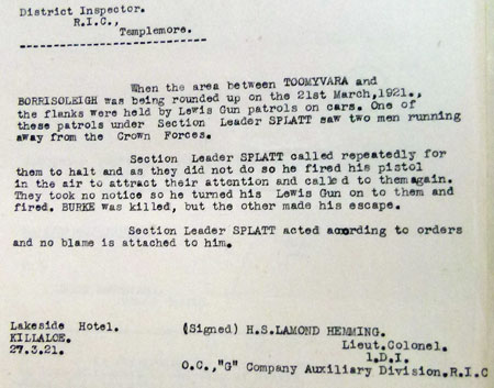 A Patrol under S/L HJ Splatt fired at and killed a youth, Martin Burke, running away from them. A Driver David Hassack (probably this man in ASC) also gave evidence