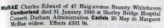 1949 Jan 31 Died in Durham