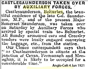 1921 May The Auxiliaries left Templemore Abbey for Castle Saunderson, Co Cavan